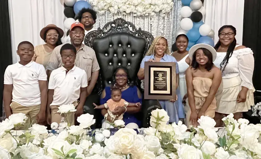 Pictured at the reception is Dr. Nickson with her family: Front Row, l-r, grandsons Braison Nickson and Ashton Page, Dr. Nickson holding her grandson Kamden Barnes, and granddaughter Addison Page. Middle Row, l-r, husband Terry Nickson and daughter Jalesa Nickson. Back Row, l-r, daughter Jasmine Page, son-in-law Terrence Smith, and daughters Joslyn Nickson and Janiya Nickson.