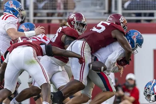 South Florida scored three points against the Tide. No. 20 Mississippi’s high-powered offense managed just 10 after racking up 158 through three games. Alabama's defense even has the intimidating slogan to match -- DOA -- and it doesn’t stand for Defense of Alabama.