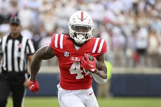 The Ole Miss offense wasn’t the same for a while after leading receiver Tre Harris went down with an injury against Tulane. The Louisiana Tech transfer has eight catches for 188 yards and five touchdowns in just five quarters. Kiffin said it wasn’t an injury that would sideline him long-term, but his availability was not clear for Georgia Tech..