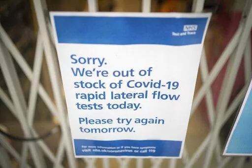 Health officials said the government has met its goal of offering a vaccine booster shot to all adults in the country by Dec. 31. About 82% of all over 12-year-olds in the U.K. have received a second vaccine dose, officials said.