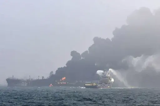 U.S.-based maritime management firm Crowley, which operates the Stena Immaculate, said the tanker “sustained a ruptured cargo tank containing Jet-A1 fuel,” when the container ship struck it, triggering a fire and “multiple explosions onboard,” with fuel released into the sea.