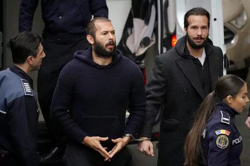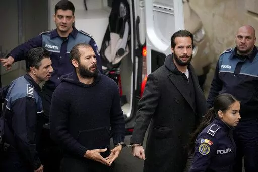 Tate, 36, a British-U.S. citizen known for misogynistic views who has 5.2 million Twitter followers, arrived at the Bucharest Court of Appeal handcuffed to his brother Tristan, who is held in the same case.
