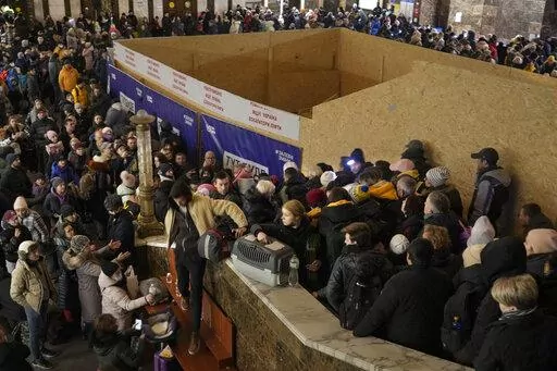 Hundreds of thousands of civilians have sought safety at night in Kyiv's subway system and other makeshift shelters around the country, where parents try to calm their children's fears. Despite the shortages, lack of privacy and other challenges, Ukrainians were trying to put on a brave face.