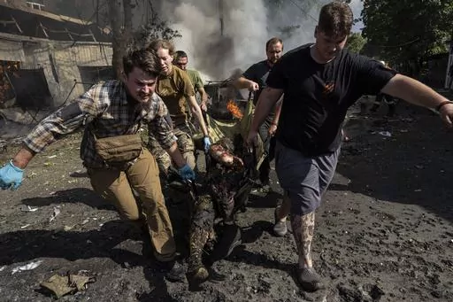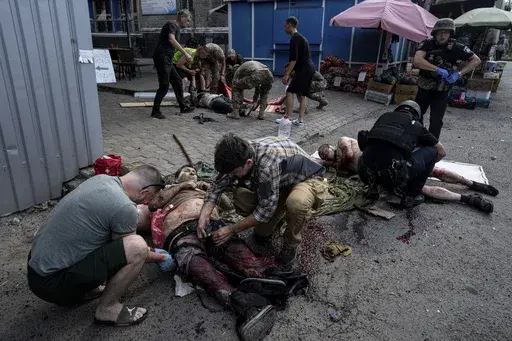 KYIV, Ukraine (AP) — A Russian missile tore through an outdoor market in eastern Ukraine on Wednesday, killing 17 people and wounding dozens, as U.S. Secretary of State Antony Blinken returned to the country with more than $1 billion in new American funding for Ukraine, including military and humanitarian aid.
