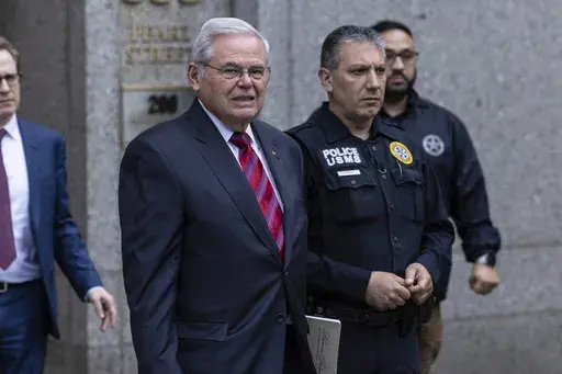 In the morning, Menendez, in a suit with a red tie, was dropped off in front of the courthouse at 8:15 a.m., 40 minutes before former President Donald Trump's motorcade passed by on its way across the street to state court, where he is on trial for allegedly falsifying business records to hide hush money payments to a porn actor before the 2016 election.