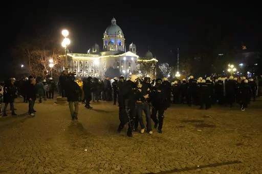 BELGRADE, Serbia (AP) — Serbian police said Monday they detained at least 38 people who took part in a protest against reported widespread irregularities during a recent general ballot that declared the governing populists as winners of parliamentary and local elections.