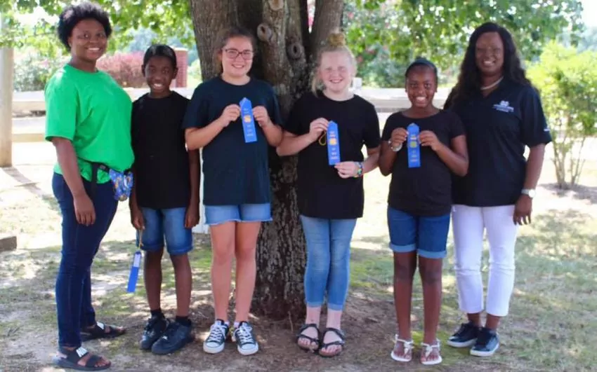 The Newton County Robotics Team placed fourth at the most recent 4-H District competition. Pictured from left to right are: Breshia Donald, Student Volunteer from East Central Community College, Timothy Ford, Atley Thomas, Anna Claire Skinner, Kensley Allen and Katrina McCalphia, Extension Agent.