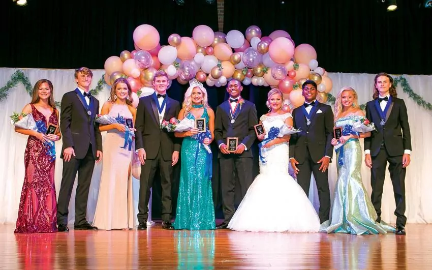 Above: The 2019-2020 Newton County High School Pageant Winners were from left: Kaitlyn Jackson, beauty; Griffin Bailey, beau; Caitlin Kelly, beauty; Justin Davis, beau; Carlie Kitchings, Most Beautiful; Londen Oliphant, Most Handsome; Sydney Miller, beauty; Kirthy Yuvaraj, beau; Anna Lynne Pierce, be