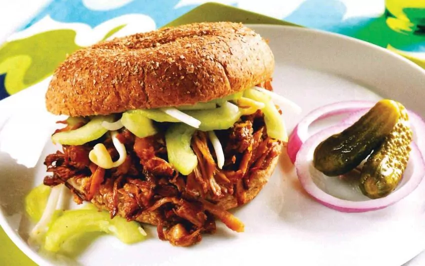 To assemble: Toast the buns cut side up under a broiler or in a toaster oven. Fill the buns with pork, drained cucumbers and bean sprouts.