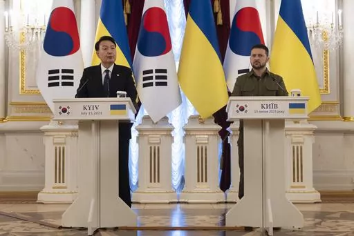 Later in May, Yoon and Zelenskyy met for the first time on the sidelines of a Group of Seven industrialized nations summit in Hiroshima, Japan. Zelensky thanked South Korea for its humanitarian shipments of medicines, computers and generators and requested additional provisions of non-lethal items, Yoon’s office said.