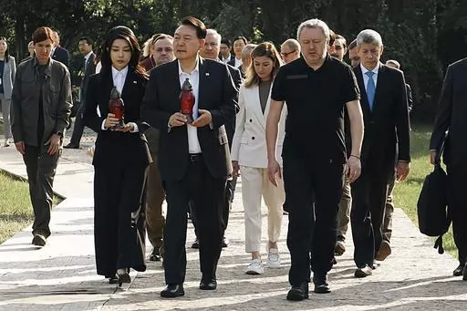 Yoon toured Bucha and Irpin, two small cities near Kyiv where bodies of civilians were found in the streets and mass graves after Russian troops retreated from the capital region last year. He laid flowers at a monument to the country's war dead, before he sat down for a summit with Ukrainian President Volodymyr Zelenskyy.