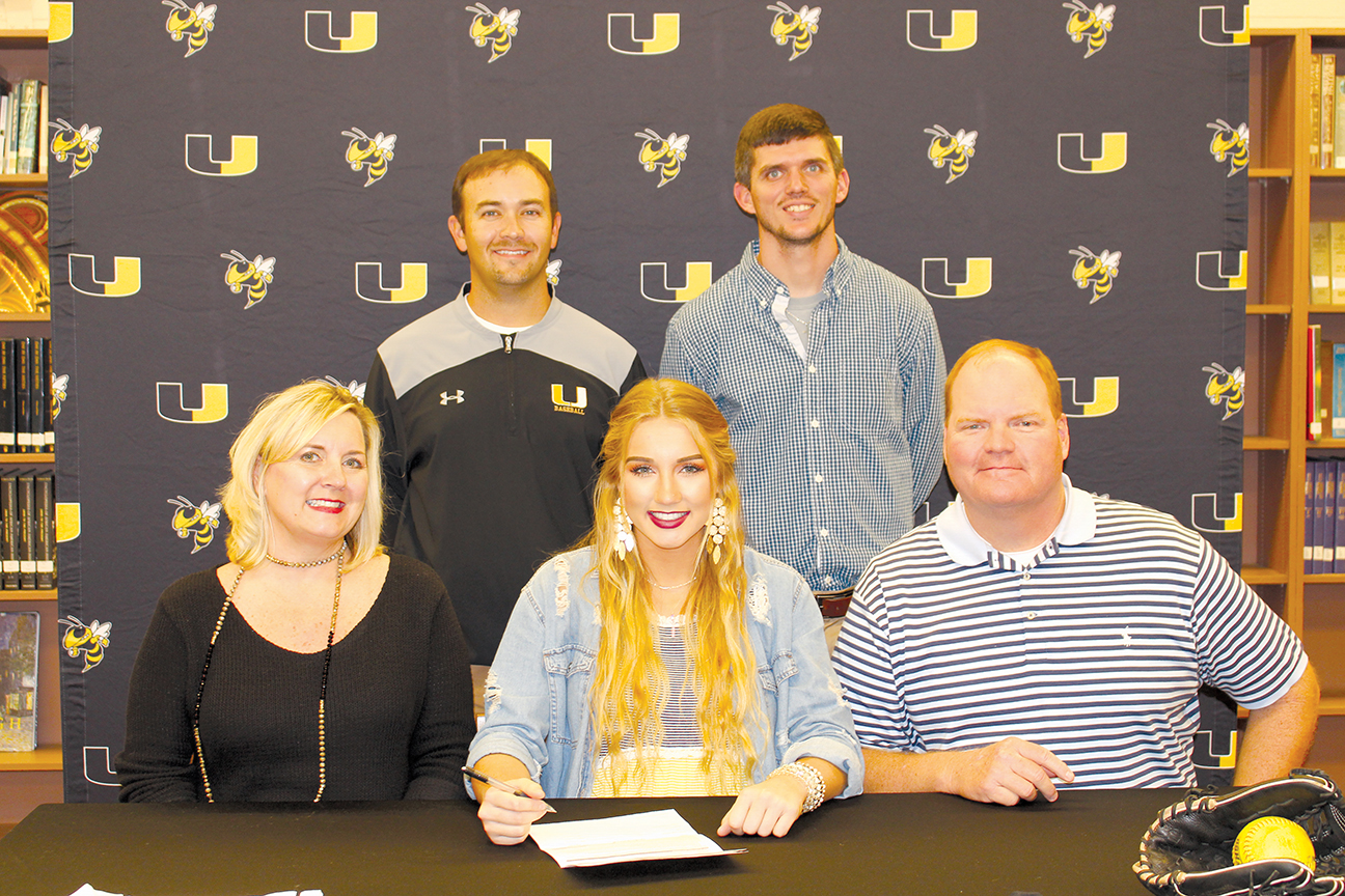 Union’s Parker Breland joined three of her teammates last week when she signed to play softball at East Central Community College.