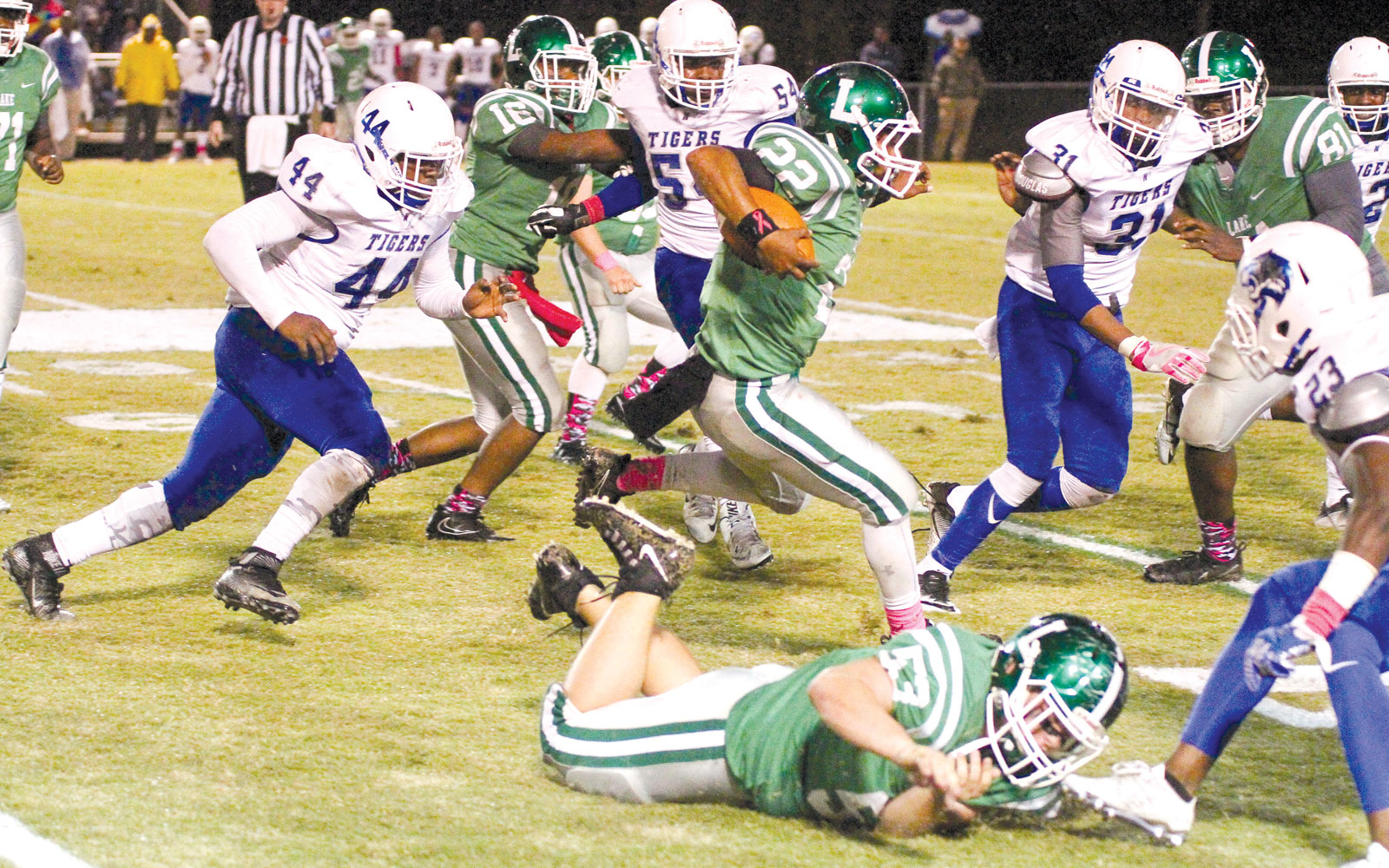 Lake then took advantage of short fields as the rain intensified. They scored on drives of 51, 22 and 29 in the second quarter to take a 20-12 halftime lead.