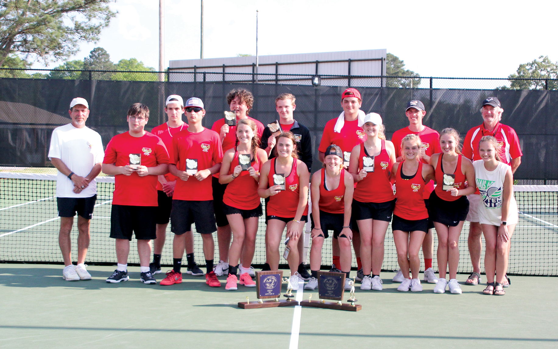 The Newton County Academy tennis teams swept both boys and girls South State titles last week as the host school at East Central Community College.