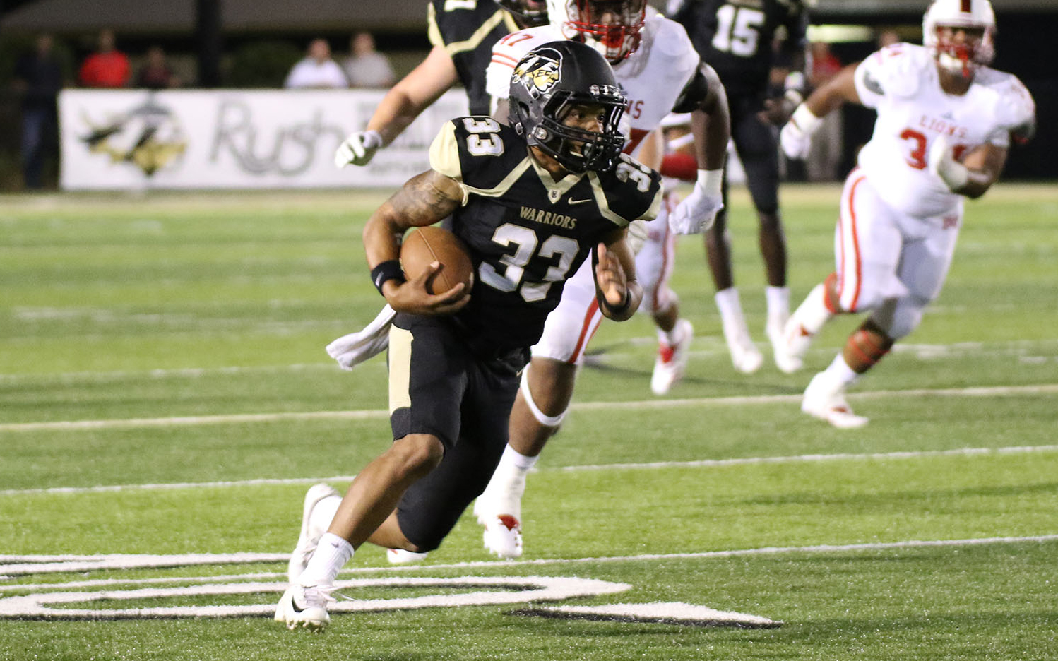 Warrior defenders sacked Lion quarterbacks six times in the first 30 minutes.