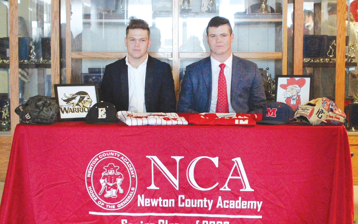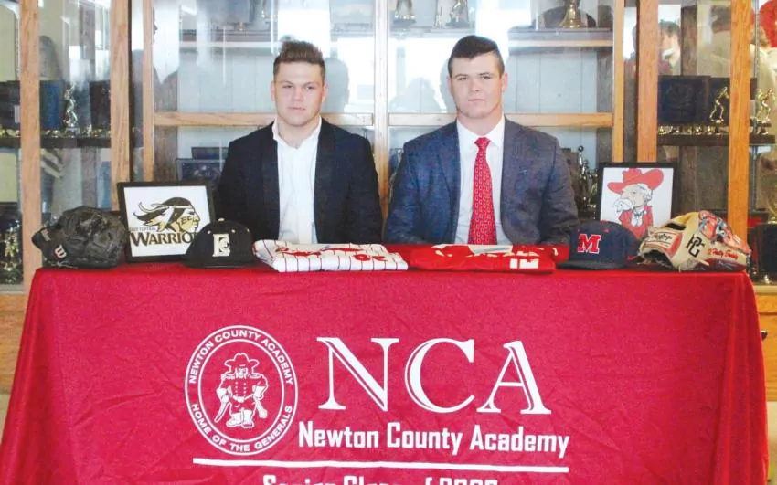 Two Newton County Academy baseball players fulfilled life-long goals last week as they signed to play baseball at the collegiate level.