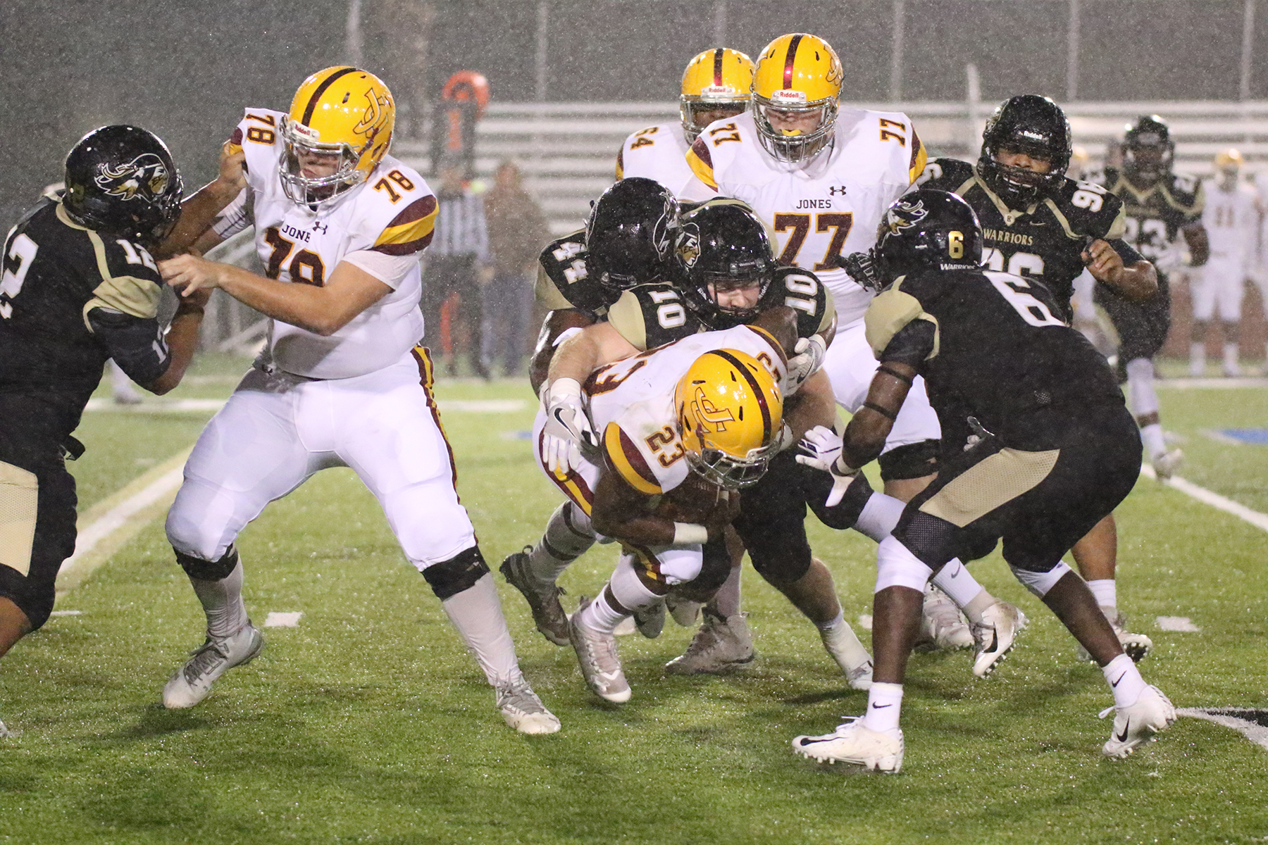 Even though East Central outgained Jones on the evening 296 total yards of offense to 279 and led in time of possession, the Warriors couldn’t overcome several early mistakes.