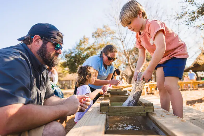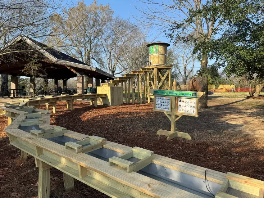 The Mississippi Department of Wildlife, Fisheries, and Parks’ (MDWFP) Mississippi Museum of Natural Science (MMNS) is excited to introduce the LeFleur’s Mining Company Gem Sluice experience, thanks to a generous gift from the Mississippi Museum of Natural Science Foundation (MMNSF). Visitors can pan for gems and fossils like a real prospector or paleontologist at this permanent, hands-on, outdoor water experience located on the museum’s grounds in LeFleur’s Bluff State Park! The experience evokes the spirit of historic prospecting calling to mind eras like the California Gold Rush and of how paleontologists sluice for fossils. Best of all, participants get to take home the treasures they uncover, making the experience both engaging and rewarding.