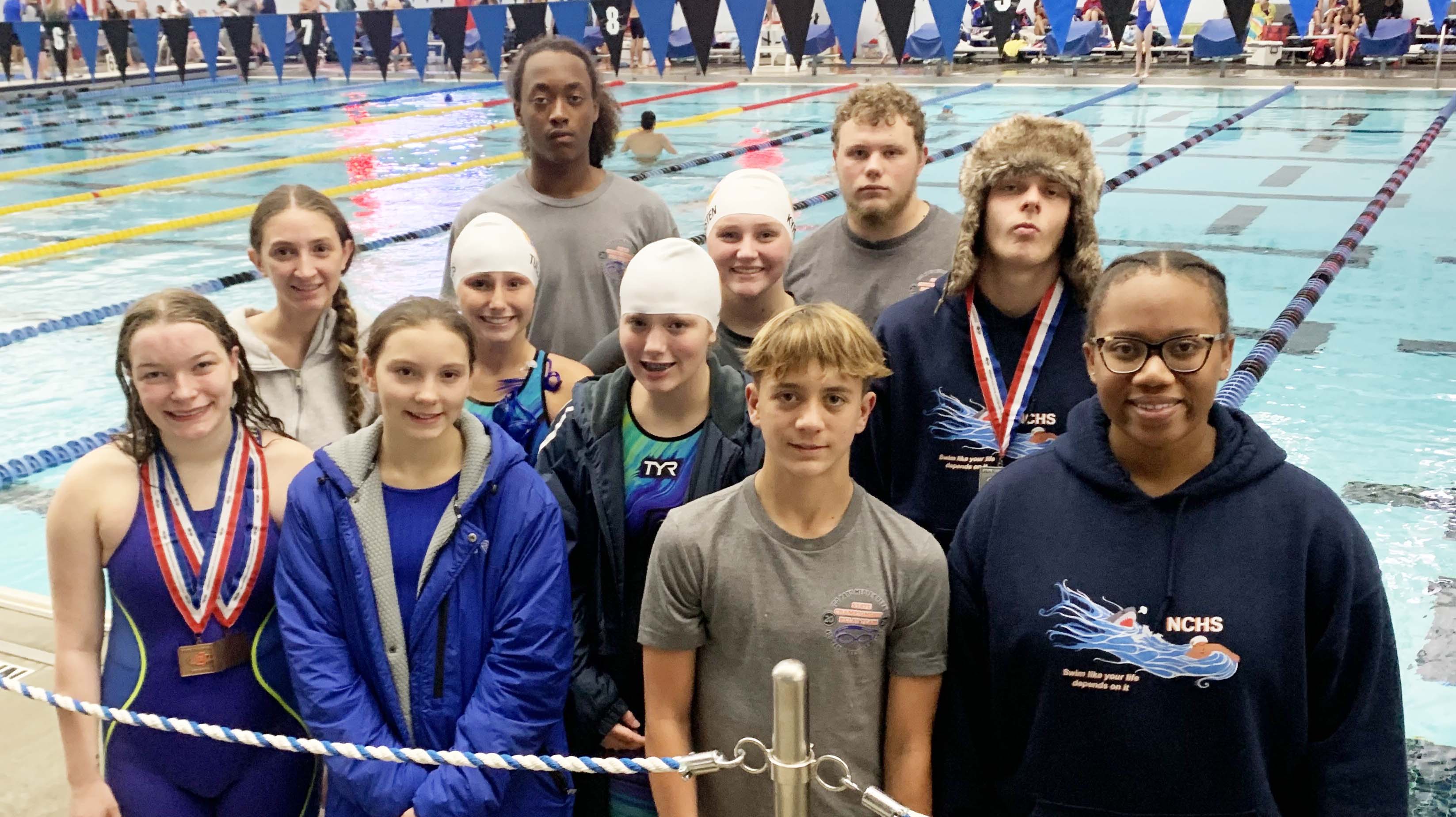 In the State Championship individual swims, Mason Cheatham became the first NCHS swimmer to bring home two Silver medals, in 200yd Freestyle and 100yd Backstroke. Edie Pippin brought home two Bronze medals in the 200yd Freestyle and the 100yd Freestyle.