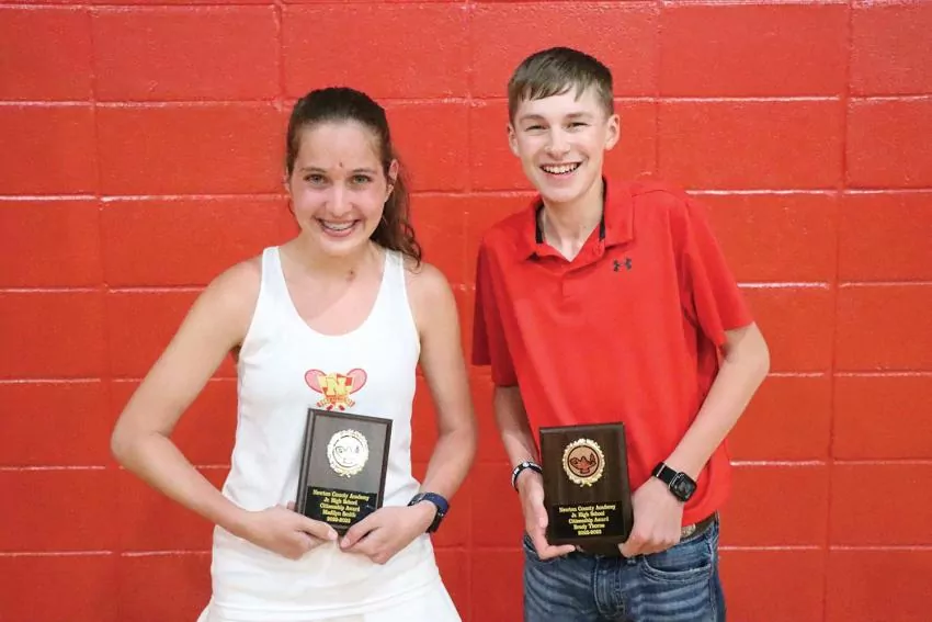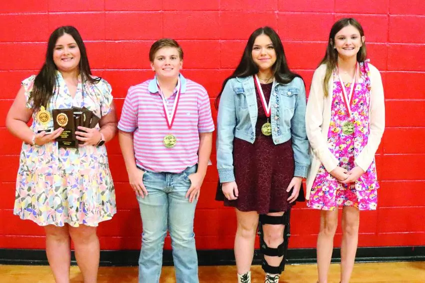 Newton County Academy seventh graders receiving awards included, from left, Addison Godwin: Science, Civics, History, Math, English and Headmaster’s List; Cooper Thrash, Honor Roll; Ashlynn Chapman, Honor Roll; and Jesslyn Mott, honor roll. Not pictured was Caleb Chambers, Honor Roll.