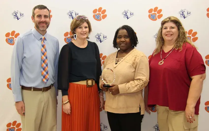 Janet Gray, an eighth grade Math teacher at Newton County Middle and High School, received the Teacher of the Year Award for the campus at the conclusion of the first semester from left: NCHS Principal Nick Smith, NCMS Assistant Principal Tabitha Chaney, Mrs. Gray, and NCHS Assistant Principal Dawn Hollingsworth.