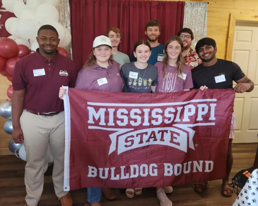 Pictured is the newest batch of Newton County Bulldogs at the Alumni Chapter’s Send-Off Party. Front Row, l-r, Jeremiah Thames, Hallie Smith, Claire Hennington, Josi Johnson, and Oshiv Yuvaraj. Back Row, l-r, Jes Henry, Kyler Walker, and Cody Rigdon. | Photo Courtesy of the Newton County Chapter of the Mississippi State University Alumni Association