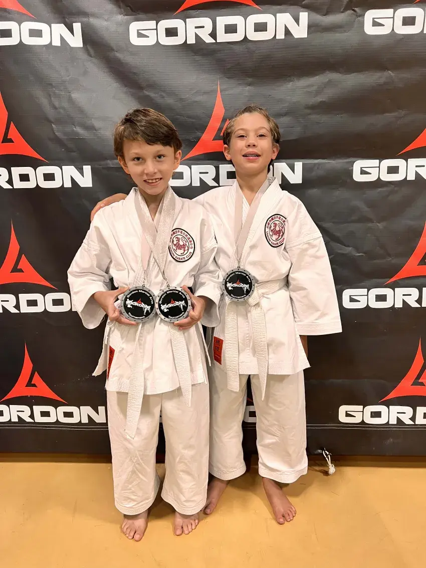 Cash Dry (left) and Thorin Parker, members of Union Karate Club, recently competed in the Gordon Martial Arts Tournament held at Hinds Community College in Raymond. The event, sanctioned by the Mississippi Karate Association, drew competitors from across Mississippi as well as Louisiana and Alabama.