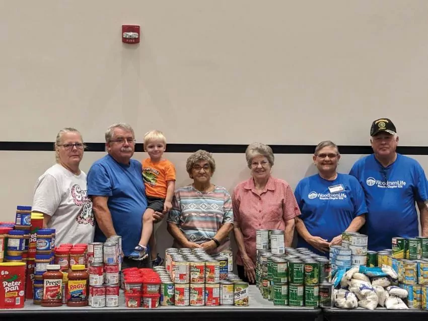 WoomdmenLife members of the Meridian Chapter 3 and Newton Chapter 624 pictured at Camp Shelby, where they donated canned goods to the Camp Shelby Food Pantry. Pictured l-r, Clair Embrey, Toby Embrey, Eliam Embrey, Francis Embrey, Faye Pate, Linda Massey, and Charles Massey were on hand to unload & box items for distribution towards families. | Submitted photo