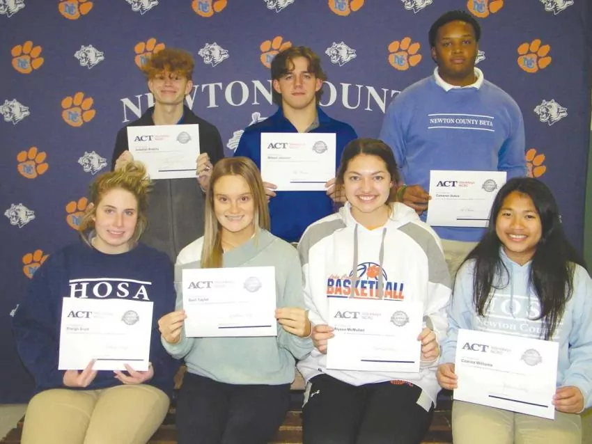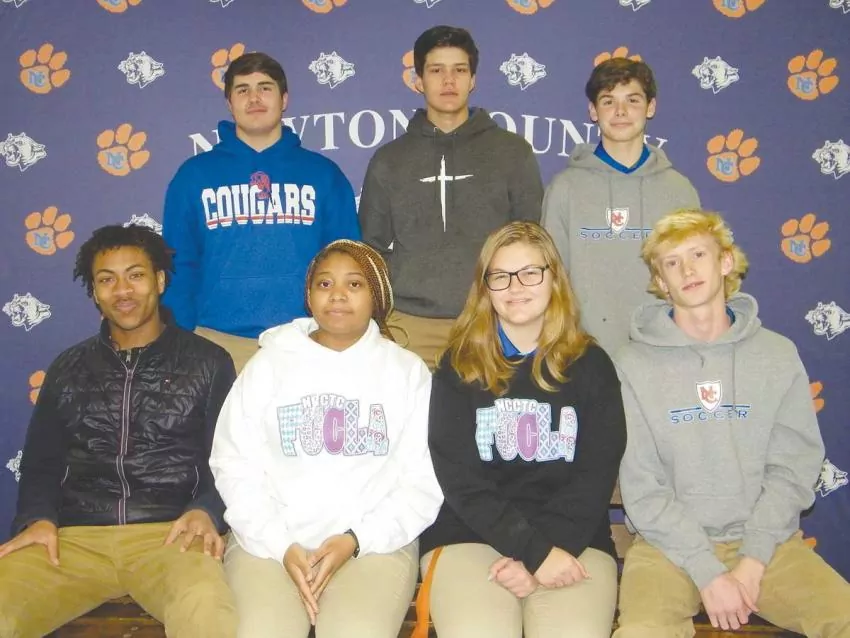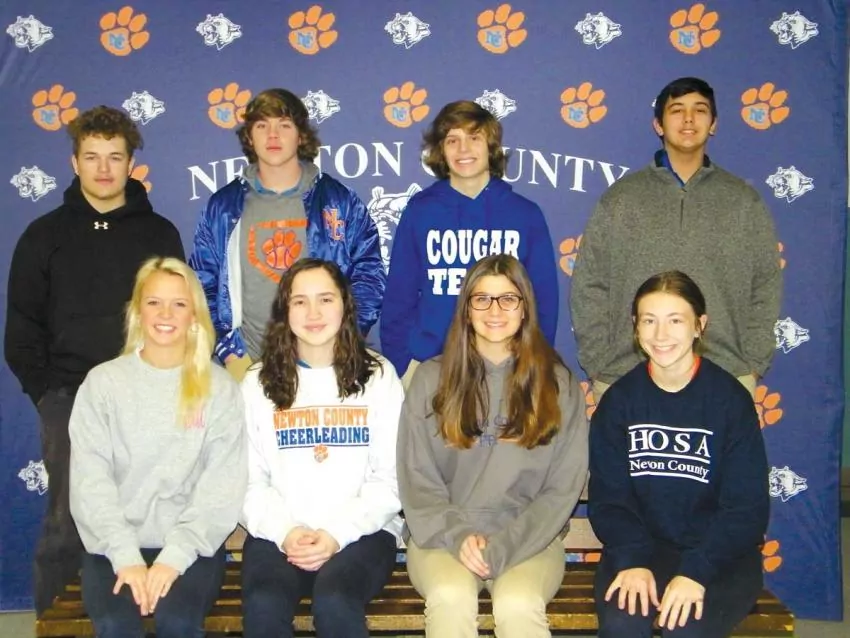 Second block Student of the Month nominees for the months of November, December and January at Newton County Career and Technical Center include front row from left: Kaitlyn Jackson, Lexi Usry and Chyann Parker; second row from left: Roby Billy, Abbye Chertkow, Hannah Reilly, Sherkera May, Trinity Smith and LJ Cole; back row from left: Chris Che