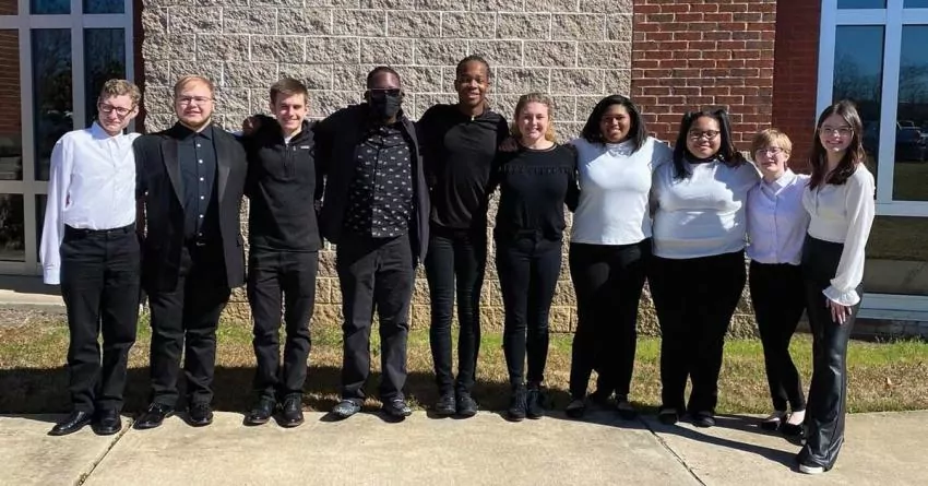 Representatives from the Newton County High School and Middle School Bands participated in the East Central Mississippi Band Directors Association Clinic in Ridgeland recently from left: Wesley Foreman, Cameron Gressett, Parker Lang, Patrick Clemmons, DeAndre Broach, Holley Beth Kiker, Cha'Nya Johnson, Layla Coleman, Macie Chaney, and Emma