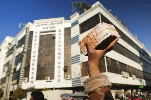 Qandi Gul holds her brother outside their home housing those displaced by war and drought near Herat, Afghanistan. Dec. 16, 2021. Gul’s father sold her into marriage without telling his wife, taking a down-payment so he could feed his family of five children. Without that money, he told her, they would all starve. He had to sacrifice one to save the rest. (AP Photo/Mstyslav Chernov)