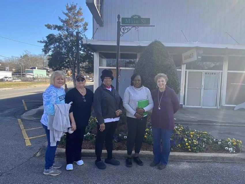 From left, Tina Bridges, Debbie Goodwin, Cathy Evans, Joyce Sims and Daisy Frazier, Meridian Master Gardeners, work on Newton’s downtown flower beds. Not pictured are Korby Mann, Laverne Hardy, Leigh Anne Whittle, Nancy Weaver, Connie McMillan, Becky Feldman, Dorothy Salter and Judy May. | Submitted Photos