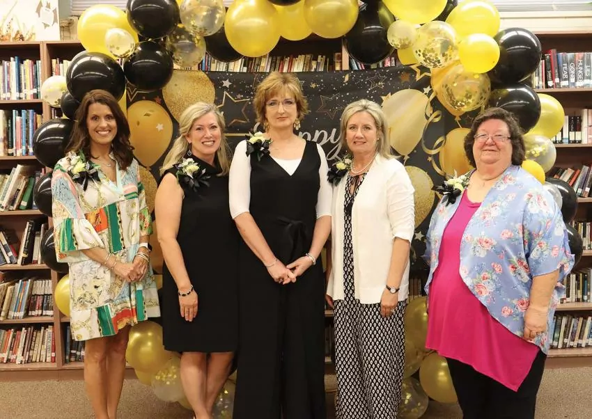 They are, from left to right, Mim Lott (UES), Melissa Ogletree (UES), Retta White (District Federal Programs Director), Cherie McElhenney (Nurse for UES and UHS), and Karen Klein (Transportation).