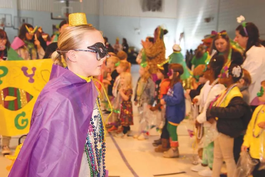 Sara Brooklyn Gentry, a fifth grader at Newton County Elementary School, pulls a wagon full of Mardi Gras “Throws” as she makes her way through the Parade route in anticipation of sharing with all kindergarten students. The iReady Celebration for the kindergarten classes was hosted by NCES TAG.