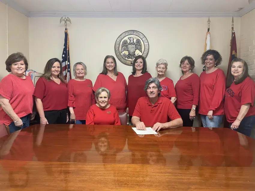 From left, Cindy Thompson, Cindy Massey, Theresa Buntyn, Pam Keith, Sonya Smith, Dianne Smith, Jackie Etie, Leanne Sullivan, Elizabeth Guisasola. Seated, Carolyn Huey and Decatur Mayor Max Anderson. | Timothy Holdiness, Copyright 2025 Emmerich Newspapers, Inc.