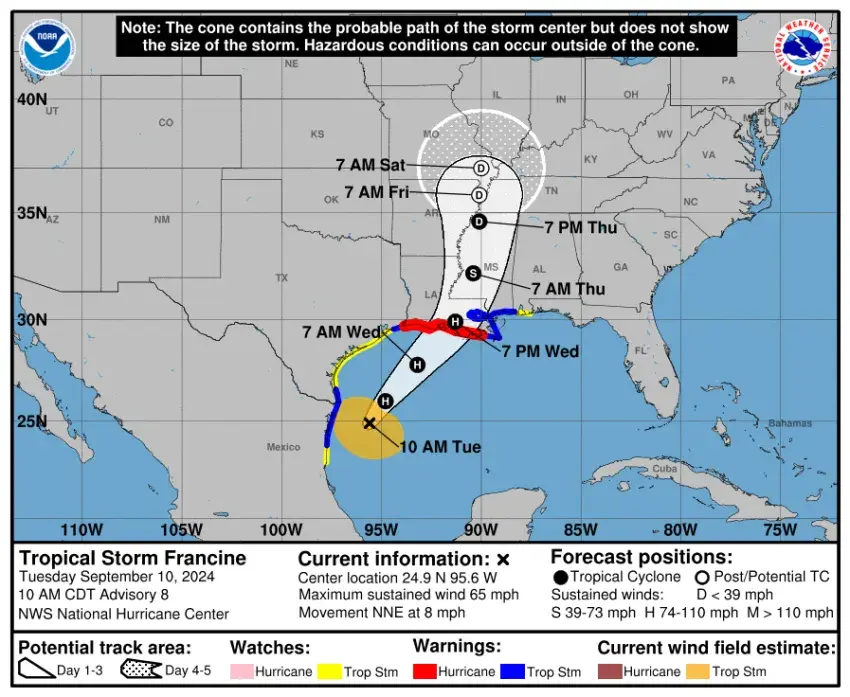 Due to the increasing threat from Hurricane Francine, East Central Community College (ECCC) will transition all classes to virtual learning and close all offices on Thursday, Sept. 12, 2024. The storm is expected to bring severe weather, including damaging winds, tornadoes, and flash flooding.