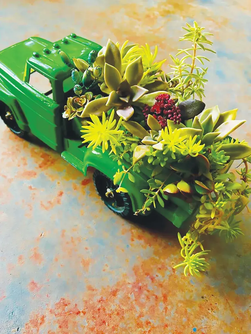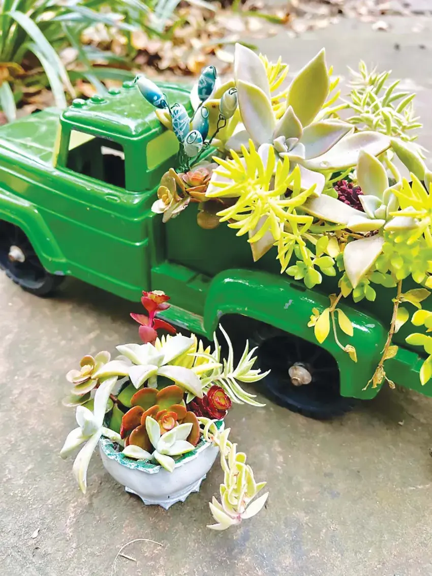 Now that my worn old eyes have been fixed, I can see stuff lying at my feet, for better and worse. Case in point, I just rescued a cast-off toy truck tire from the street curb, which has now been cut, inverted, painted and recycled into another tiny pot of live, miniature succulents.