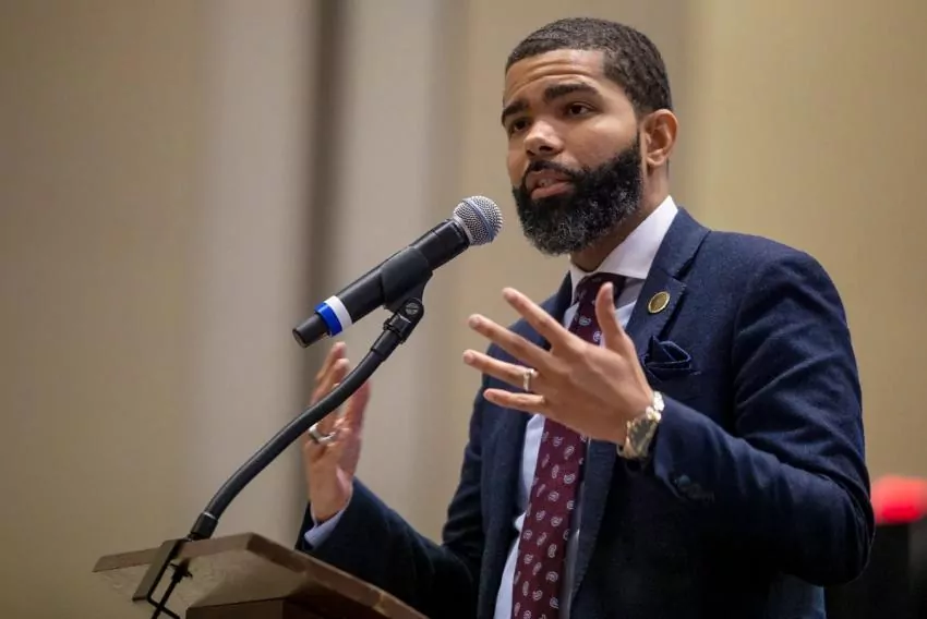 Jackson Mayor Chokwe Antar Lumumba speaks to an audience about the findings from a student-centered study on the district during a public meeting at the Jackson Convention Complex Thursday, November 29, 2018. Credit: Eric J. Shelton, Mississippi Today/ Report for America