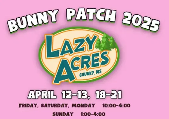 Opens April 12th, 2025 — Lazy Acres Bunny Patch is excited to announce its opening for the 2025 season, bringing family-friendly fun to the community with a series of engaging activities, including the return of our beloved "Bunnies and BBQ" event, “Breakfast with the Bunny” and our scavenger style egg hunt.