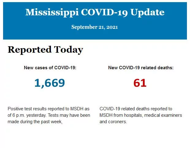 Listed below is the daily COVID-19 update for the state of Mississippi.