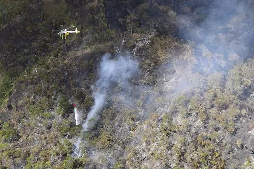 HONOLULU (AP) — A wildfire burning in a remote Hawaii rainforest is underscoring a new reality for the normally lush island state just a few months after a devastating blaze on a neighboring island leveled an entire town and killed at least 99 people.