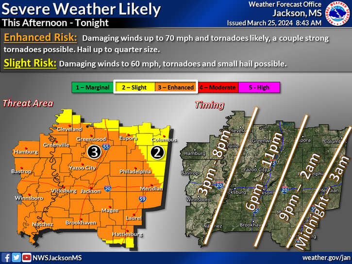 NEWTON COUNTY, Miss. — The National Weather Service (NWS) in Jackson has issued a warning for Newton County residents as a powerful line of storms is expected to sweep through the area late Monday evening, carrying an enhanced risk of severe weather, including the potential for tornadoes.