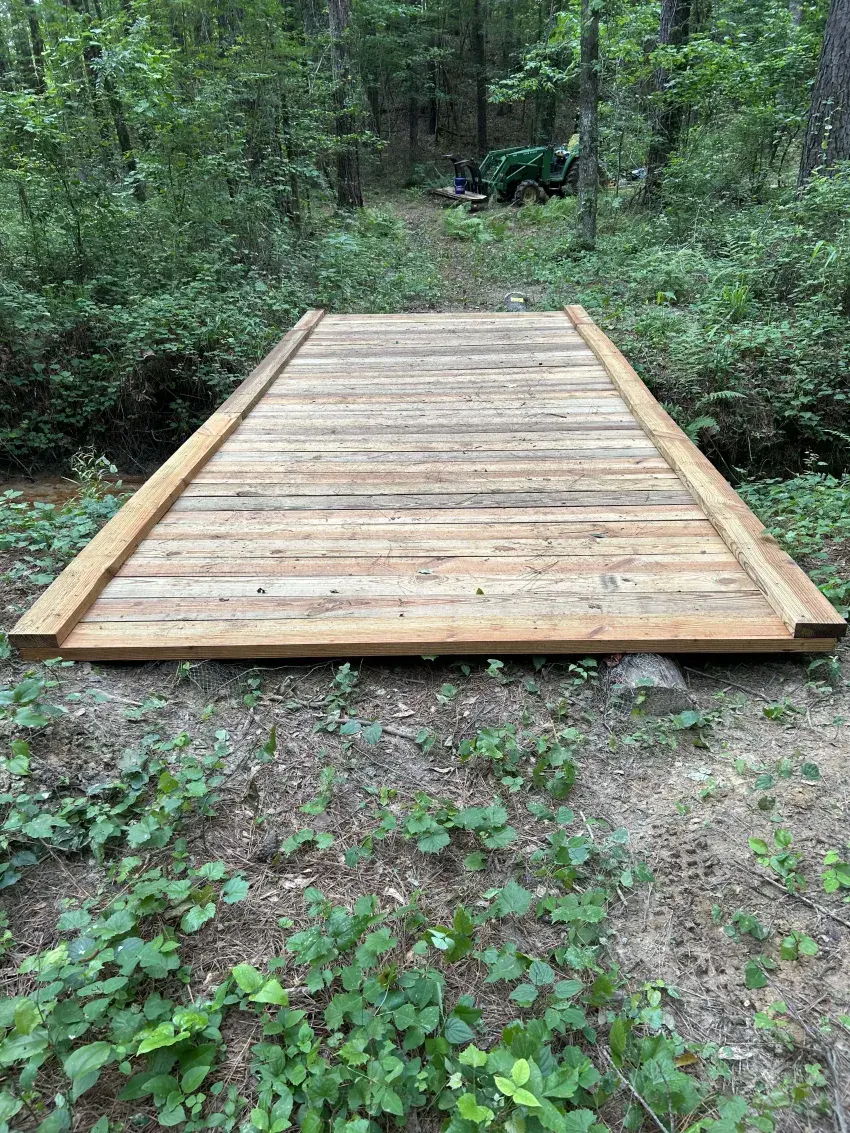During Spring Break earlier this year, Troop 46 Scouts spent three days “wilderness camping”, while working to clear large sections of debris form the trail and create a new bridge crossing across a washed-out culvert. The 40-foot bridge was built using donated power poles and locally milled rough-cut lumber. The Scouts used recycled materials to treat and stain the lumber, then hauled more than 60 of the 2x6x8 boards to the bridge area. While they were hoping to get more done, the Scouts were challenged by limited accessibility to the remote area, inclement weather, and limited workday availability with their Scouts. However, they were able to complete their first major crossing project and are now preparing for their next project, a bridge that spans four times longer.