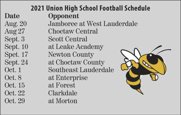 On Sept. 10, Union will make the short trip to Madden to play Leake Academy, the defending MAIS Class 5A state champion, who went 13-0 last year.