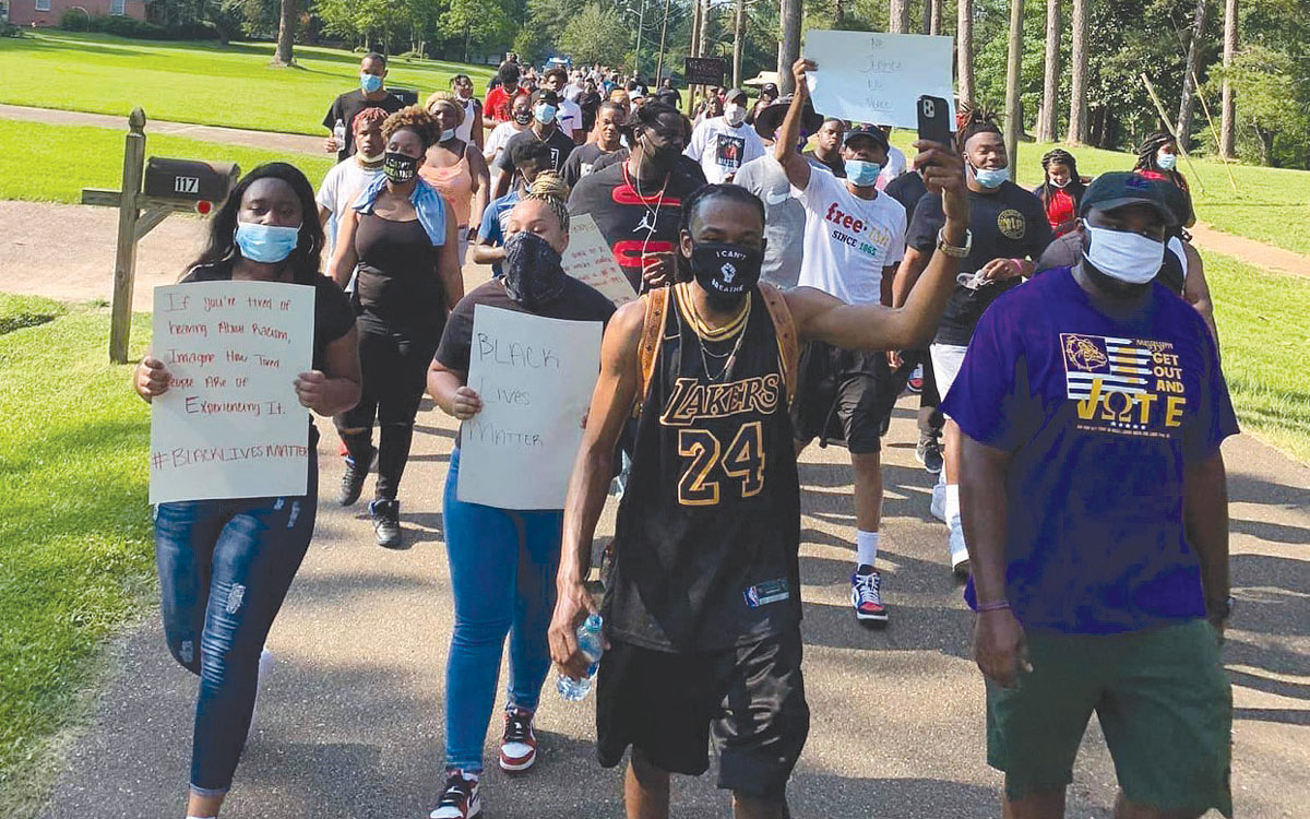 Demonstrators gathered at town square and traveled down Main Street, Jackson Street and Park Street, stopping to kneel, remembers and pray at Union High School.