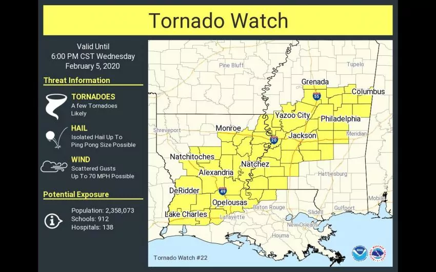 The National Weather Service has issued a tornado watch for Newton County until 6 p.m. Wednesday.