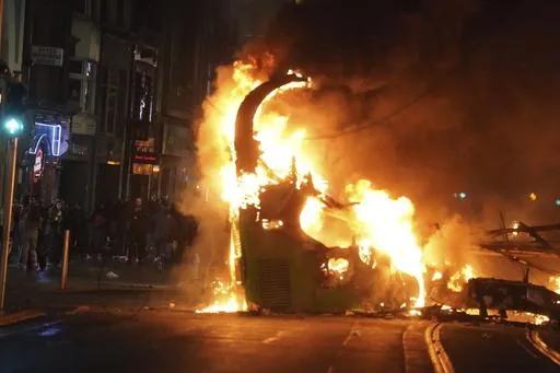 LONDON (AP) — Violent clashes broke out in central Dublin on Thursday evening, with vehicles torched and riot police attacked, after a 5-year-old girl was seriously injured in a knife attack earlier in the day that also saw a woman and two other young children hospitalized.