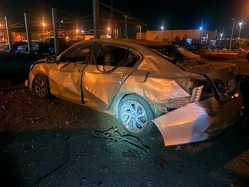 The Saudi Press Agency shared photos of firetrucks dousing leaping flames with water and a trail of rubble wrought by shrapnel that crashed through ceilings and pocked apartment walls. Other images showed wrecked cars and giant craters in the ground.